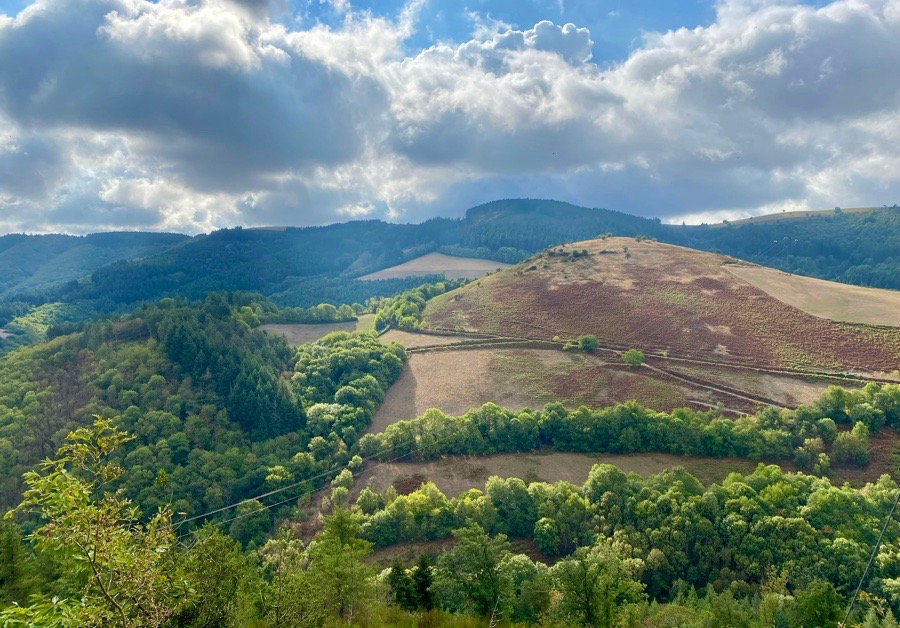Me voilà sur des routes inconnues. Elles serpentent dans une forêt épaisse. Je croise quelques fermes isolées et découvre de nouveaux panoramas. Je passe les villages de Berlats, Teil Bas, Artizium, Gijounet, jusqu'à mon arrivée à Lacaune. Là, je pars au Nord, et monte le col de Sié pour ouvrir la vue sur le département de l'Aveyron.